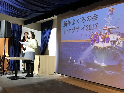 新人たちは、まぐろづくしのイベントを無事に終え、安堵した表情だ。