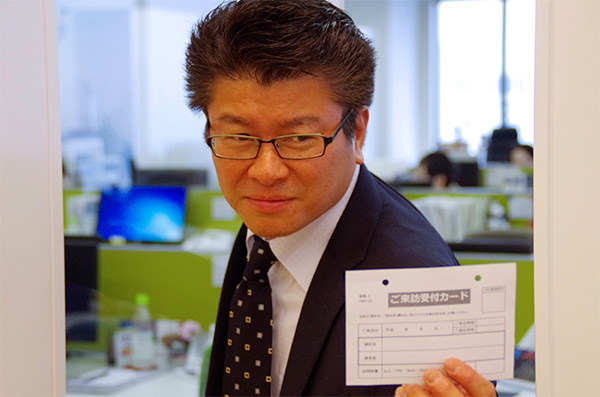 セキュリティ管理の都合もあるし、受付カードに記入してくれるかな。