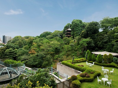 「わたくしどもの広大な庭園は、古来より椿が自生する景勝の地で、長い年月をかけて育まれた自然の宝箱のようです。樹齢500年を超える御神木がいまでも庭園を見守ってくれております。また有形文化財に指定された三重塔や茶室残月がございます。これらの文化財や歴史的建造物を、藤田男爵がこの地に配置したことで、その風情を一段と高め、まるで「天井のない美術館」とも呼べるでしょう。ホテルのシンボルの庭園であり、ホテル椿山荘東京の独特な雰囲気を作りだすものです。」