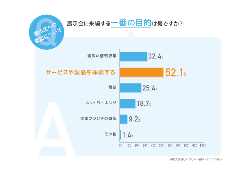 展示会への一番の来場目的は、「サービスや製品を体感すること」