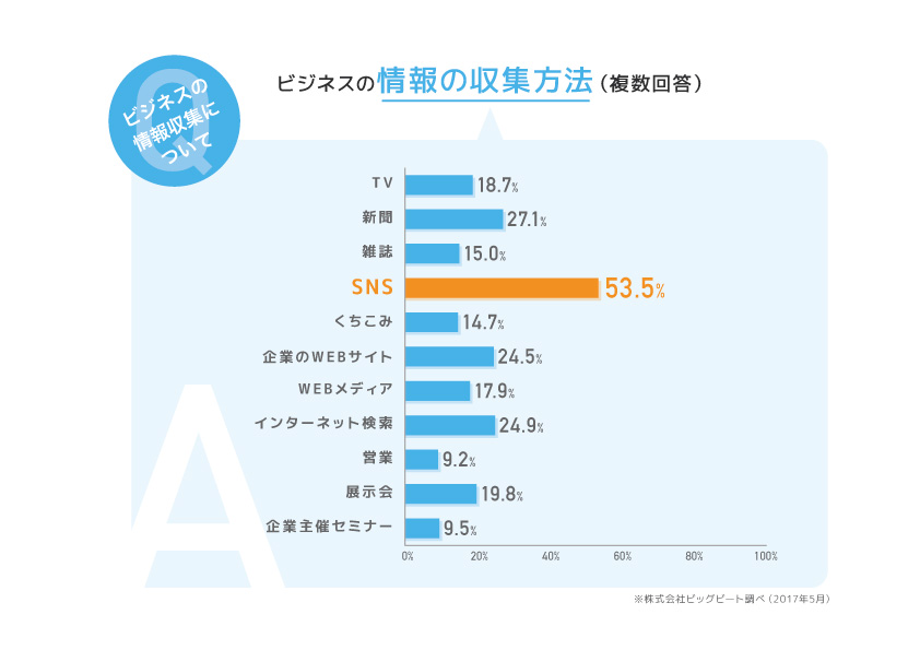 ビジネスの情報収集方法、No.1は「SNS 53.5%」