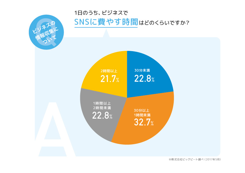 約半数のひとが、ビジネスにおいて1日あたり1時間以上をSNSに費やしている。