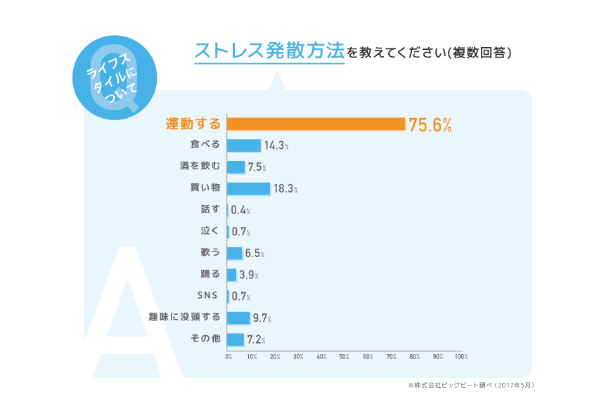 発散方法としてダントツの回答が「運動をする」でなんと75.6%!
