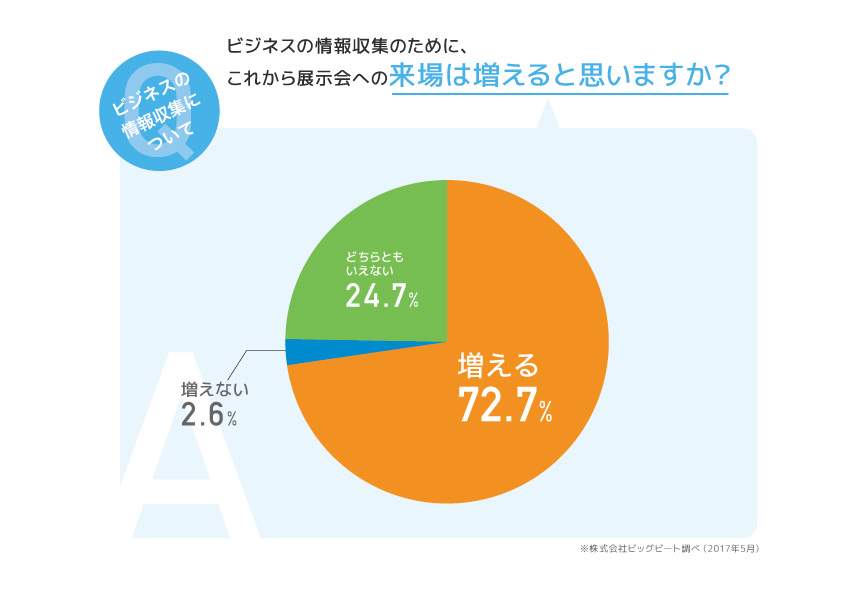 また、回答者の7割以上が展示会への来場はこれからもっと増えると思っている
