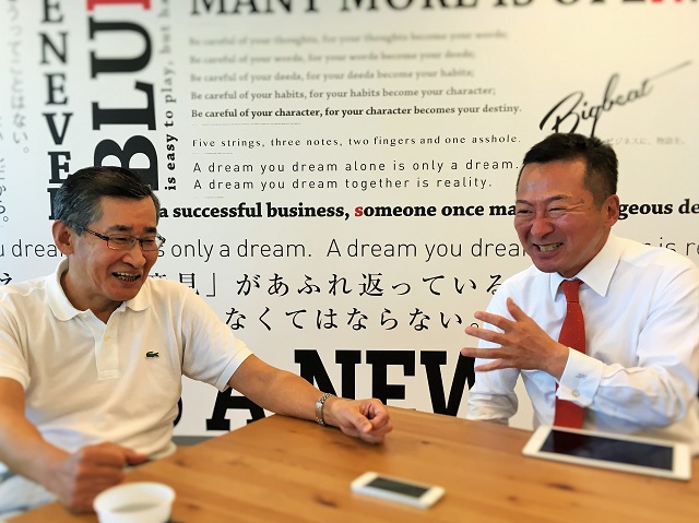銀行員から転身し、経営者としてゲームソフト会社、レコード会社、IT系企業など、多彩な業種に関わってきた武市智行さんをお迎えしての対談・第二弾。武市さんは濱口と同郷で、しかも同じ高校の先輩。今回は、自身がライフワークだと語る故郷・高知県の活性化についてお聞きしました。「若い人たちの夢を応援したい」と話す武市さんの言葉には、支援に懸ける熱い想いと郷土愛がぎゅっと詰まっています。