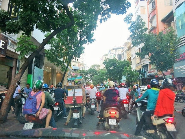 また、観光名所の近くには、歩道をバイクが走らないようにバイク除けが設置されいたり、鶏を山のように積んだトラックが普通に道を走っていたり、その横で2人、3人乗りのバイクがたくさんはしるベトナム。