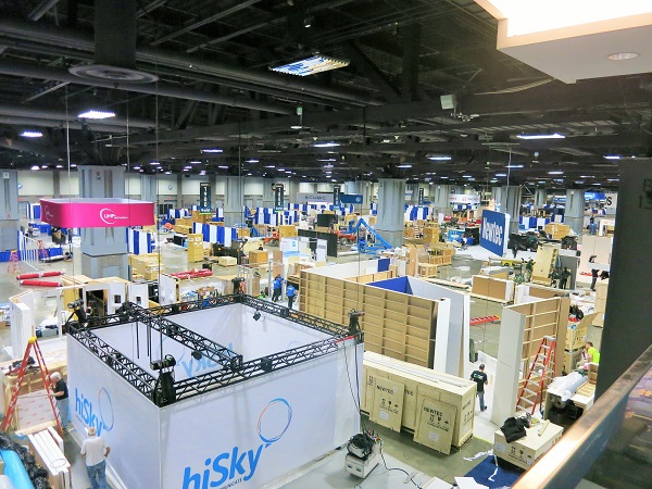 アメリカの展示会では、2feet×2feet(日本でいう6m×6mブースほどの大きさ)以上のブースであればハングサインを掲示することができるケースが多いようです。