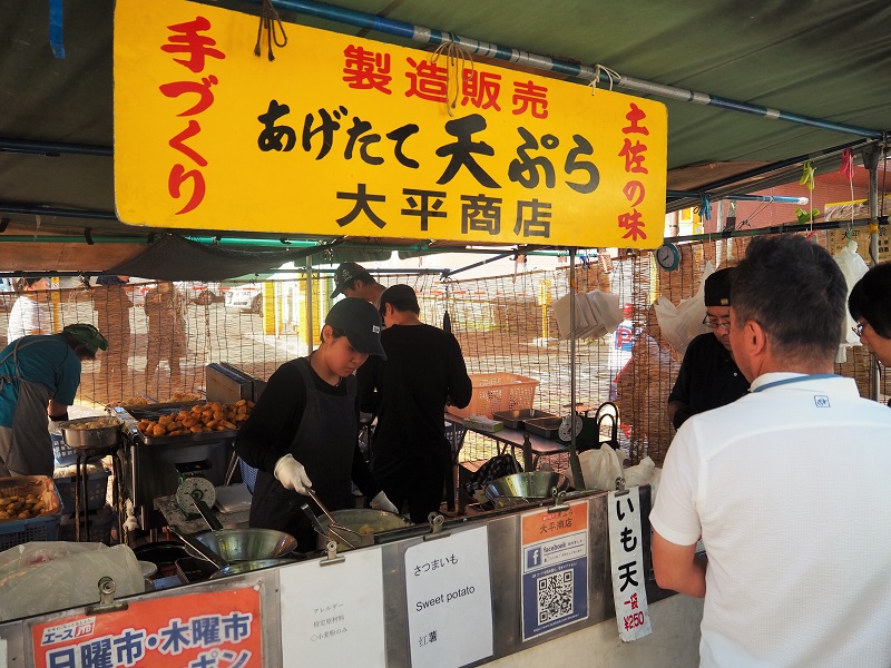さつまいもを甘い衣で揚げたイモ天はその場でサクサクいただきました。