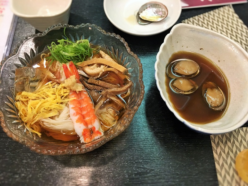 甘めの味付けのそうめんと、「ながれこ、これだけで今日はおしまい!」と運よく食べられた貝(とこぶし)もおいしかった…