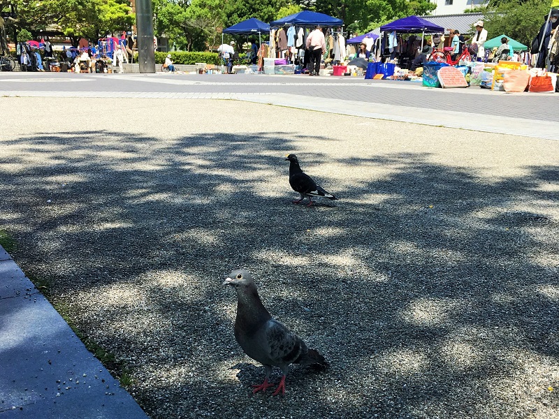 高知市中央公園のハトさん。広場ではイベントが開催されにぎわっていました。