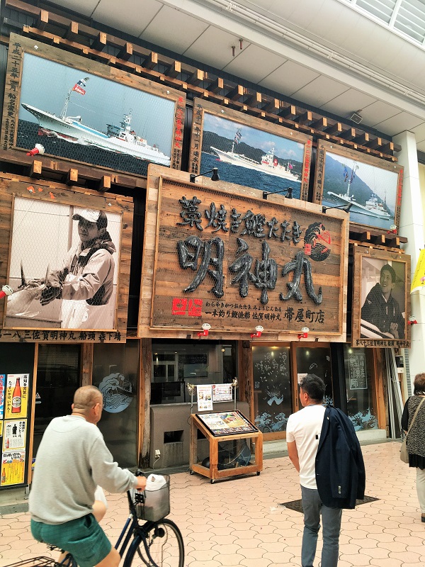 公園の近く、帯屋町商店街が続きます。ここには、ビッグビートの高知部もよくお世話になっている明神水産のお店「藁焼き鰹たたき 明神丸」があります。