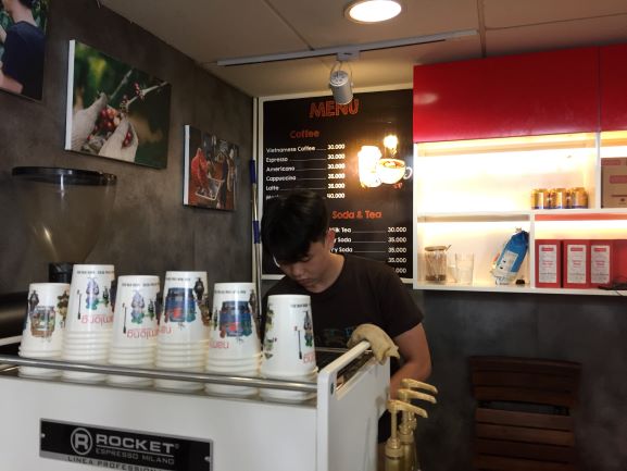 Trung Nguyenは有名なコーヒープロデューサーであり、ベトナムの主要都市に数多くのスタイリッシュなカフェがあります。 1つのブロックに複数のカフェがあるなんてことも珍しくありません。1区にあるTrung Nguyen Legend