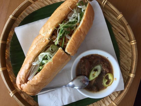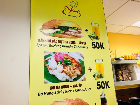 ベトナムの「バインミー」と呼ばれるサンドウィッチ。簡単に食べられてとても美味しいです。SECC内にあるお店“Banh Mi Ba Hung”では、自家製のとても美味しいバインミーが食べられます。コンボサンドイッチとドリンクで50,000 VND(約250円)です!サンドイッチの他に、xoi(ソイ)というもち米料理や軽食もあります。