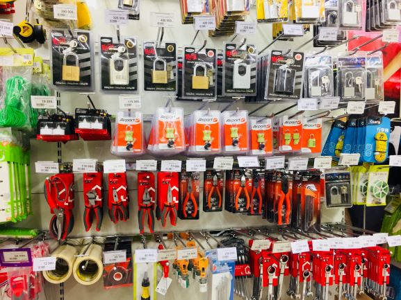 食品売り場の近くに、オフィス用品、電源コンセント、建設ツール、ロックなど、さまざまな種類の必需品を置く家庭用品売り場があります。