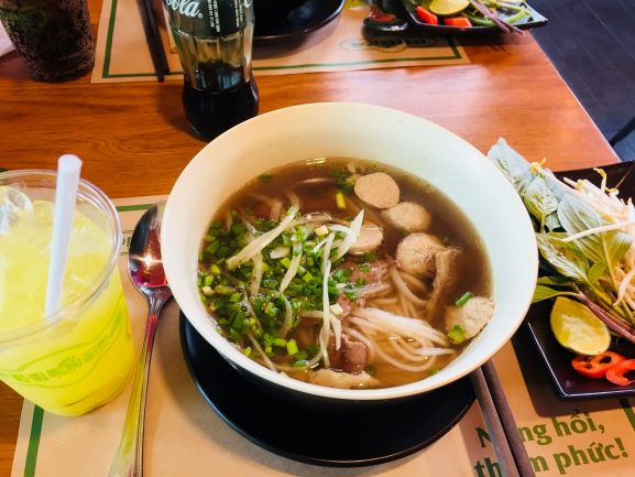 SECC近くにあるお店、゛Pho 24″もおすすめ。ベトナムの麺、フォーを提供する有名で美味しいレストランチェーンです。店内はエアコン完備で清潔ですので、街の暑さから逃れられる素敵なお店です。ニョクマムさんもお気に入りの様子。