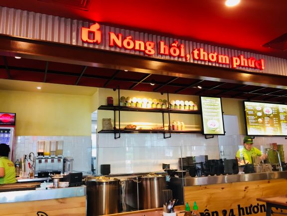 SECC近くにあるお店、゛Pho 24″もおすすめ。ベトナムの麺、フォーを提供する有名で美味しいレストランチェーンです。店内はエアコン完備で清潔ですので、街の暑さから逃れられる素敵なお店です。ニョクマムさんもお気に入りの様子。Pho 24の内部
