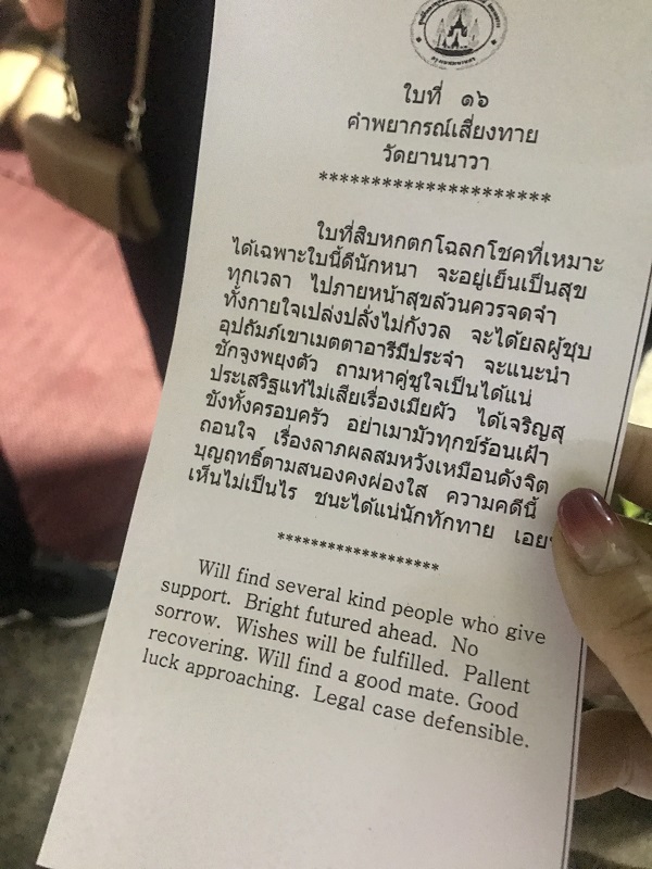寺院では日本で言うおみくじも。何やらいいことが書いてある雰囲気。