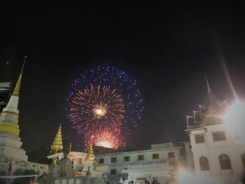 お隣の寺院「ワット・ヤーンナーワー」でも、出店がたくさん。終盤には打ち上げ花火も。