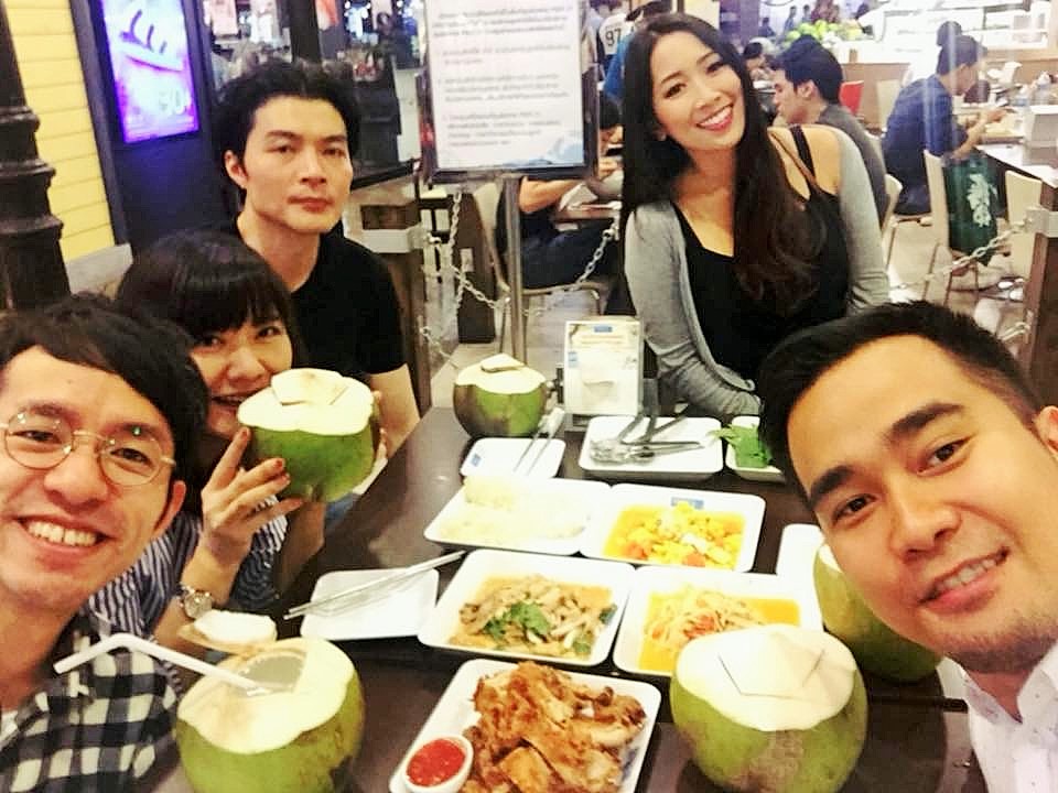 右下が現地スタッフのアランさん。「このタイ料理はおいしく食べられました。」(by長田氏)