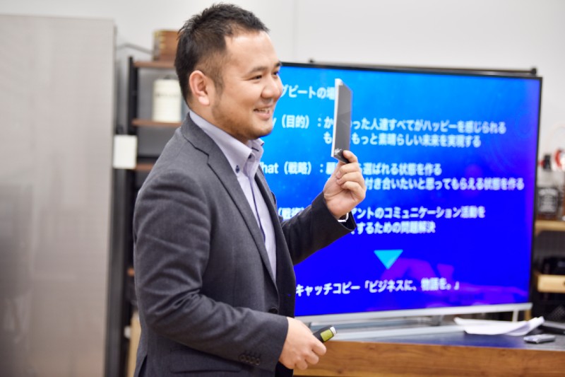 このイメージを確立するには、「形を作って終わりではなく、社員一人ひとりがそれを体現し続ける、つまり継続性が必要です」と野北は語ります。当社は、自社の目的や戦略、そして具体的な事業内容を体現するものとして「ビジネスに物語を」というキャッチコピーを作っています。