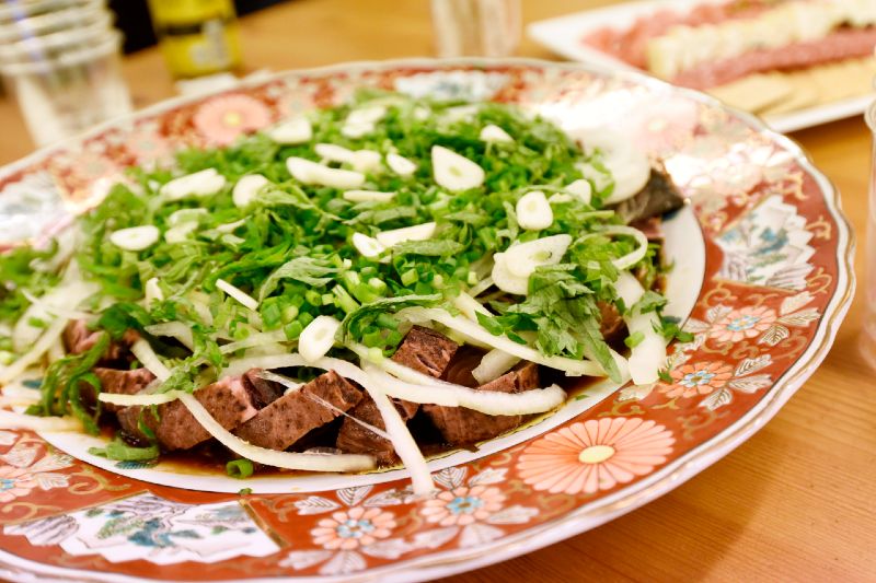 メインは高知名物の「カツオのたたき」。代表の濱口が高知の水産業者から特別に仕入れたもので、公にはできませんが「これが楽しみで生・おきゃくに参加する」というマーケターの方もいるくらいです(!?)
