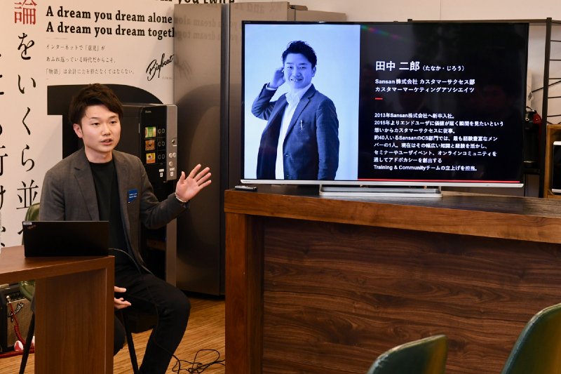 Sansanの中でもBtoBサービスの運用支援を行うカスタマーサクセス部で、セミナーやコミュニティの運営を担っている田中さん。2013年にSansanへ新卒入社した田中さんは、4年ほどカスタマーサクセス部へ従事しており、社内で最も長くお客さまと接してきたメンバーの1人だと言います。