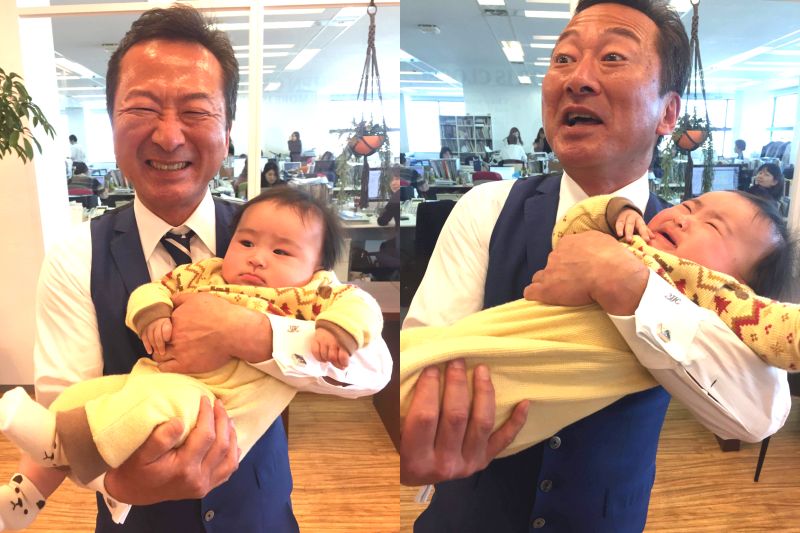 ビッグビート代表・濱口(※赤ちゃんはビッグビート社員のお子さんです)
