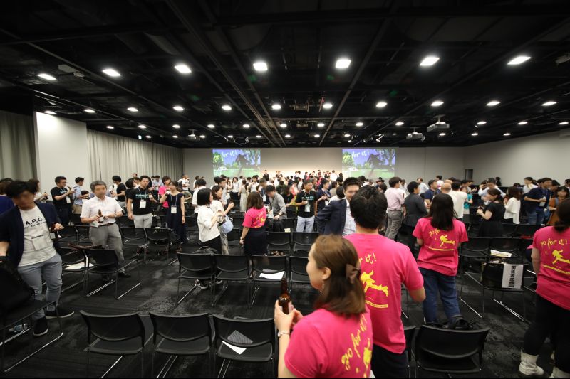 いよいよBigbeat LIVEのフィナーレ「大・おきゃく」がスタート!ホワイエには高知の地酒やソフトドリンクのほか、試作と試食を重ねて完成した「go for it!」の樽生ビールやスペシャルフードがズラリ。数百名の参加者の皆さん、パートナーさん、ビッグビート社員たちが集い、おいしいフードやお酒を手に、Bigbeat LIVEの熱気や意見を共有しあったよ♪