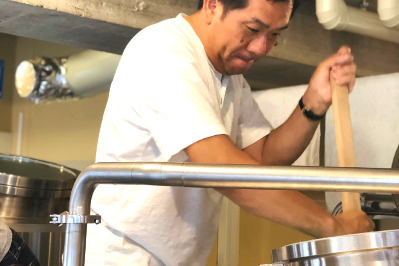 つづいてマッシングへ。粉砕した麦芽とお湯を混ぜてお粥状にし、デンプンを糖化します。