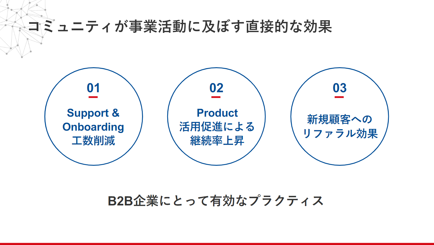 コミュニティは、サポートやオンボーディングの工数を削減できるほか、活用促進による継続率上昇、新規顧客へのリファラル効果といったメリットが得られます。特にクラウドサービスのビジネスを左右する解約率については、「現在、月次解約率は0.66%まで下がっており、ほとんどのお客様に継続してご利用頂いています。今後コミュニティを強化することで、当たり前のようにSansanを使ってもらう環境を作っていきたいと思っています。」と松尾さんは話し、今後さらなる挑戦を続けていくことを表明しました。