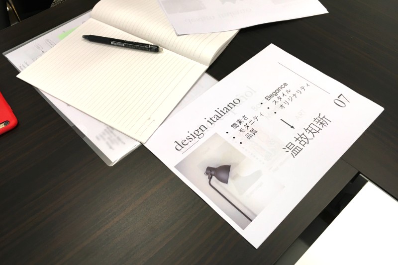 英語のDesignからイタリアのデザインについて考えてみたのですが・・・(「温故知新」と書かれた資料を出す)