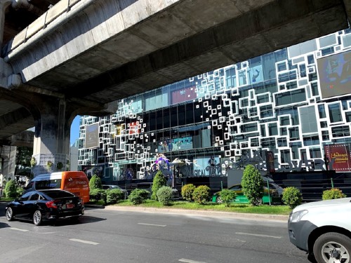道路反対側に見える建物は、2016年にリニューアルした「サイアム ディスカバリー」。外装などデザインの総合監修は日本人デザイナー佐藤オオキ氏(nendo)。