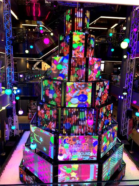 とにかく派手なクリスマスツリーがモチーフ?の大きなオブジェ。暑さで忘れていましたが、このときはクリスマス間近でした。タイ人はLED装飾が好きなようで、とにかくカラフル。派手な装飾です。どこもかしこもキラキラしています笑。