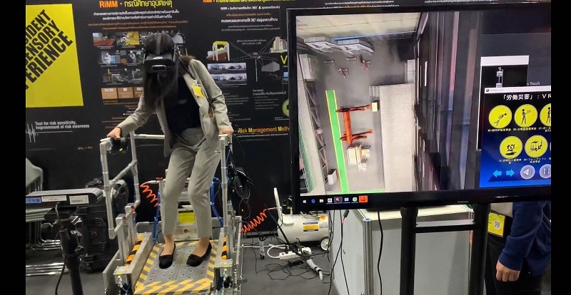 こちらは工事現場での危険をVRで実際に体感できるものです。実際に危険を体験することで、危険予備知識の教育教材となります。このように事故は起こる、いつ自分に起きてもおかしくない、と身をもって学ぶことができます。工事現場の危険のシュミレーションだけでなく、さまざまな使い道があるかもしれません。