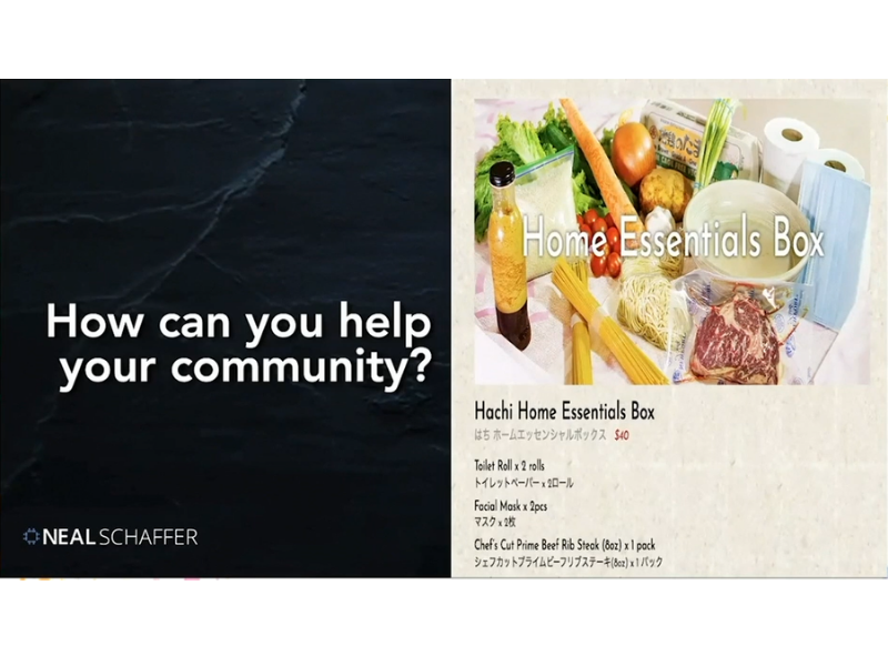 ニールさんからははじめに、アメリカの大手企業Walmartの副社長が語った「Business exists to serve society(社会の役に立つため、企業は存在する)」という言葉が紹介されました。COVID-19によって、どんな企業にも少なからず困難な局面が訪れていることかと思います。危機的な状況にあればこそ、社会に対してどのように貢献していけるのか、今の状況からすべきことを判断する力が求められています。例えば、飲食業界においては、日本でも多く見られましたが、アメリカでも店頭でのテイクアウトやインターネットを活用したサービスが拡大しました。ニールさんからはカリフォルニアにある日本料理のレストランの例が挙げられました。そのレストランでは、カリフォルニアに多く在住している日本人の単身赴任のサラリーマン向けに、自宅で調理できる料理キットを販売し始めました。その中には、当時品薄になっていたトイレットペーパーやマスクも同封。日本とのコネクションから品薄な日用品も入手することができたため、飲食店=料理を提供する場という以上に、そのお店にできることを考え、実践された例でした。
