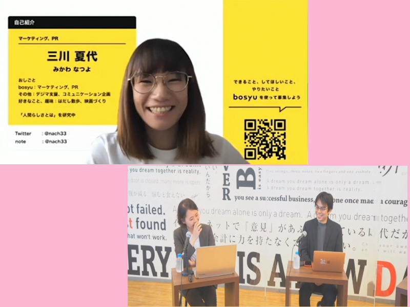 パネリストの4名は年齢も性別も様々で、4者4様の働き方をされていましたが、お話を聞いていく中で「自分のやりたいこと・好きなことをカタチにするために挑戦を続けている」という共通点が浮かび上がりました。その中で、私が特に刺激を受けたのは、株式会社bosyuの三川 夏代 さんのお話でした。
