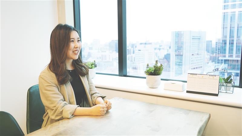 スポーツトレーナーのインターンシップに参加するため海外留学をし、帰国したのちビッグビートのインターンに参加、入社したという一風変わった経歴を持ち、現在入社3年目の青木涼香。