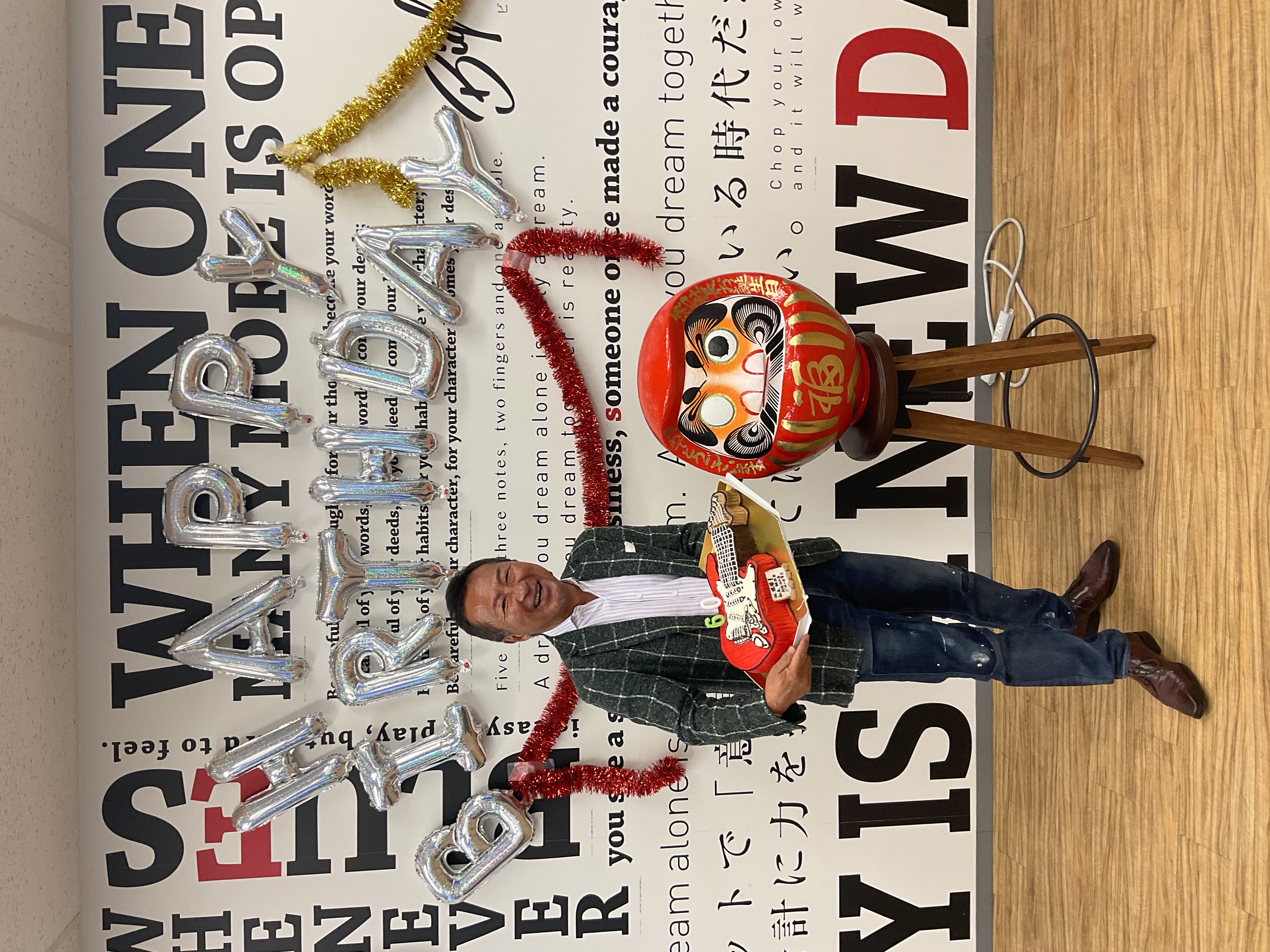 Bigbeatの仲間たちは赤いストラトのケーキとダルマさんでお祝いしてくれました!