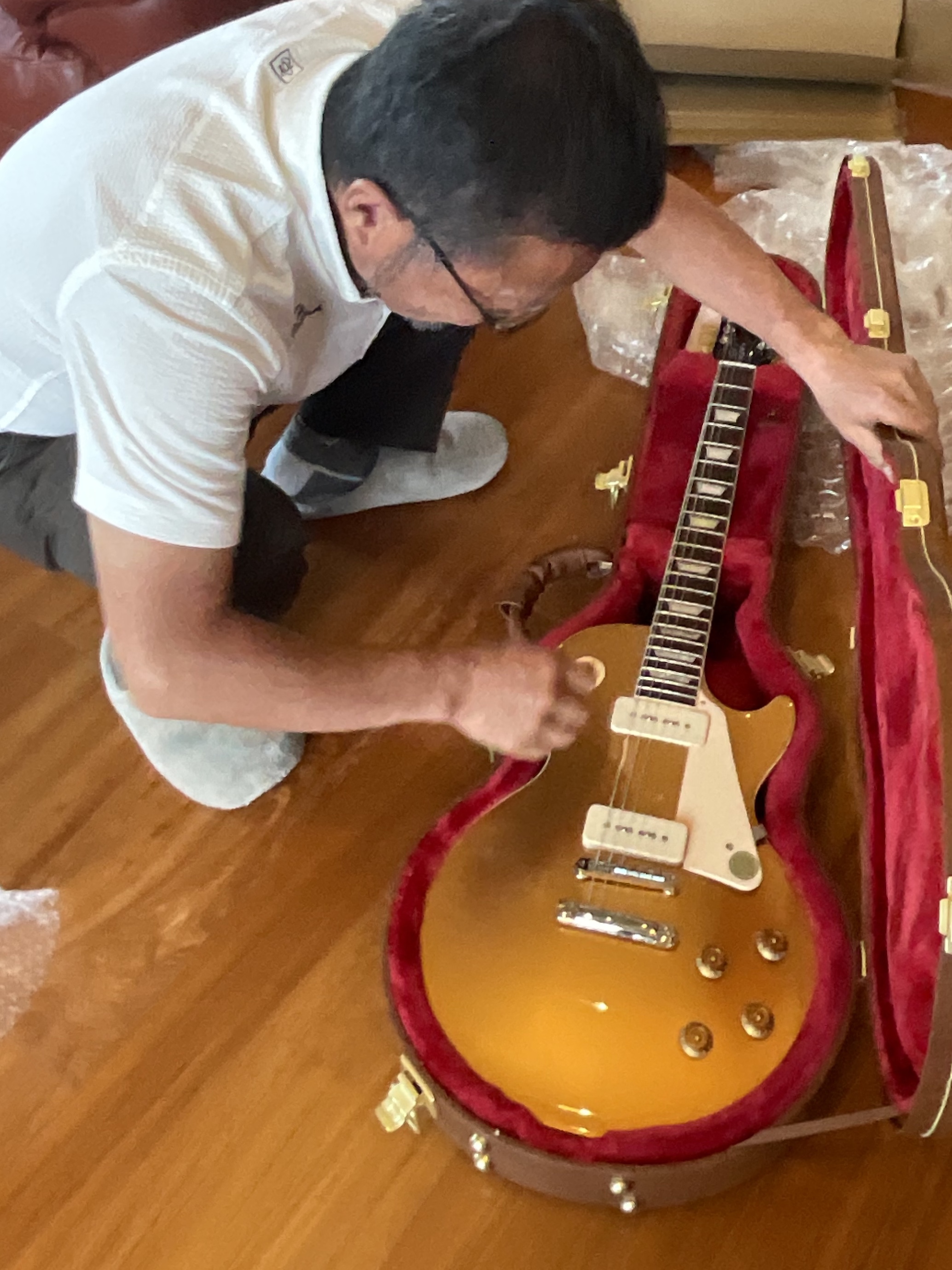 なぜか、赤いサンサンゴではなく金色のレスポールに出会い、一目惚れして連れて来てしまいました。