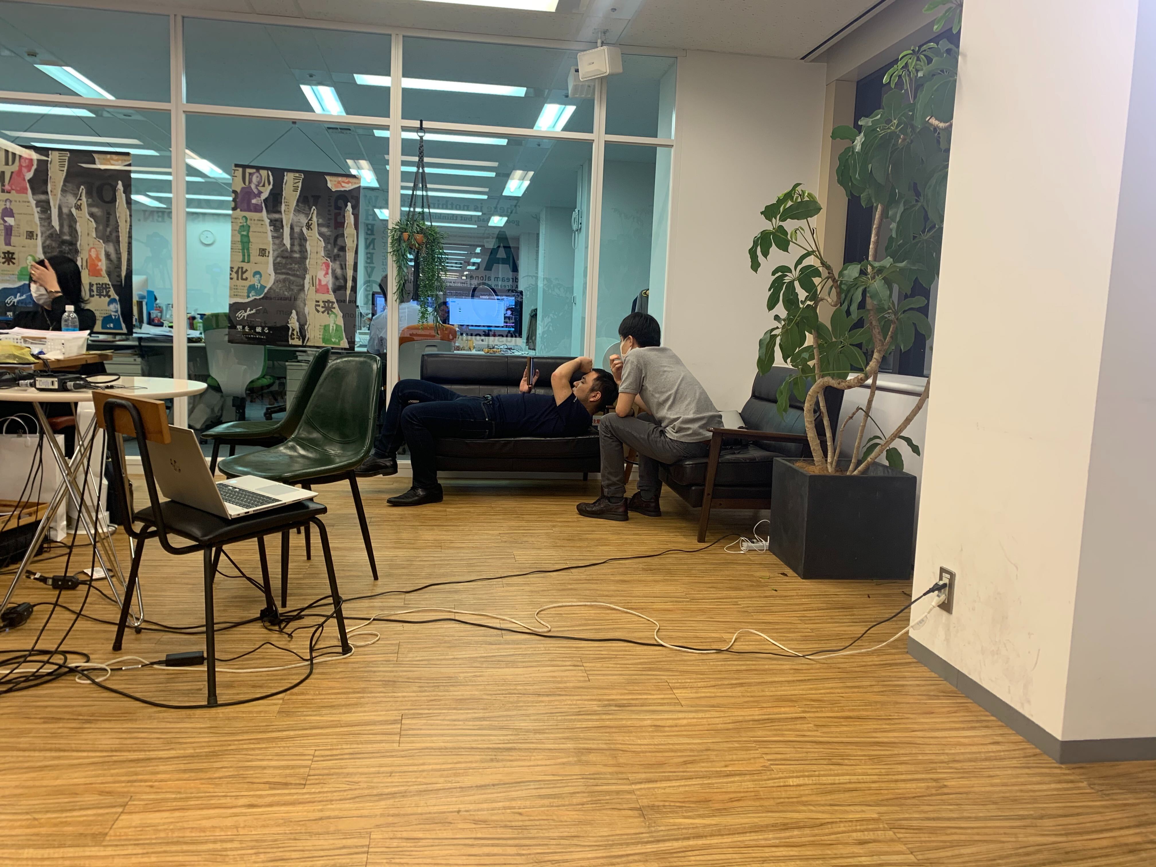 同時期に、会議室を潰してオンランイベントの配信スタジオに変更し、テレワークでガラガラのオフィスを活用しました。