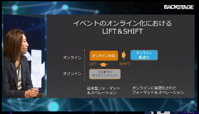 いままでのオンラインイベントをオンラインに対応していくLIFTが多い昨今、本来はSHIFT(最適化)をしなければならないのでは、という小島さんからの問いかけに対し、鈴木さんは、「6月頃まではオフラインでやっていたものをオンライン化しても目新しさがあったが、今は”ながら聞き”の人もいるので、そういう方々にコンテンツをどう届けるかを考えなければいけない」と話します。