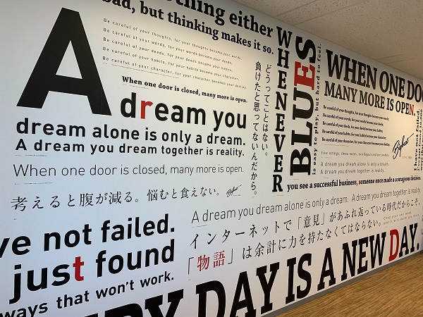 当社の壁には、数々のトップリーダーの言葉が掲載されている