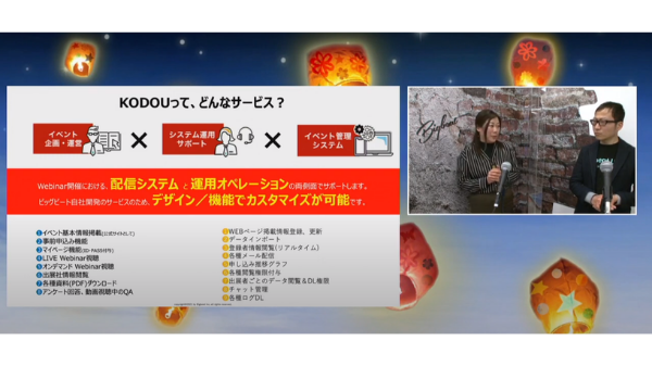 ストーリーテラーもコマーシャルも、どれだけの人の心に届いたのか、数値で示せるものではありません。しかし、ストーリーテラーの噛み具合をセッションの中でいじられたり、チャット欄に投稿された「おもろい、おもろい」「すごい!主催者のみなさんのパワーがすごい」というコメントの数々から、この仕掛けをやった意味があったと私は感じました。セッションだけを流す、あるいは司会進行として必要な情報を決められた原稿通りに読むのではなく、ビッグビート社員の言葉で、そしてライブならではの見せ方ができたことで、私たちらしさがにじみ出た演出にできたのだと思います。