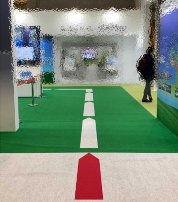 例えば、「入り口をあえて1つに限定し、床に動線を印刷しているブース」です。